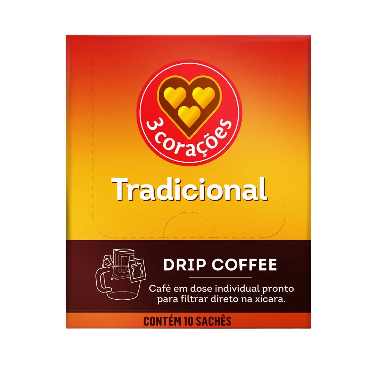 1 CAIXA COM 10 SACHÊS (10g cada) - DRIP COFFEE TRADICIONAL 3 CORAÇÕES